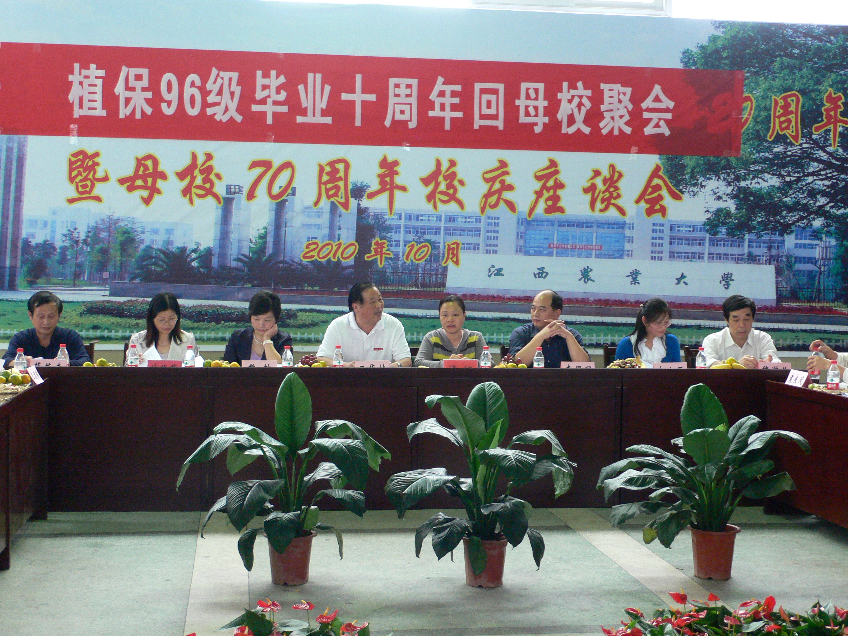 10月6日下午,96植保班全体毕业生回母校庆祝毕业十周年活动在亿万先生mr01官网二楼报告厅举行。副校长王华林、校庆办副主任谈红、外办主任朱晓玉、亿万先生mr01官网院长李保同、院党委书记黎敏、副院长魏洪义参加了座谈会。